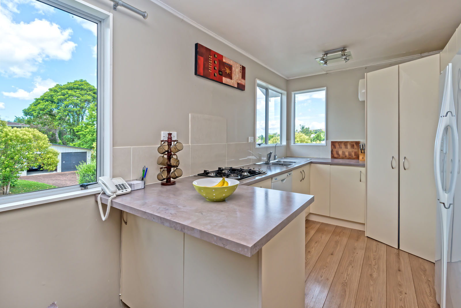 Set on 801m2 of superbly landscaped grounds, this 3 bedroomed home, with open plan kitchen, dining and lounge is just begging for a family to move in. With a sheltered deck flowing off the lounge into a north facing, fully fenced garden, summer BBQ's will be sizzle.