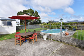 With 4 bedrooms, master with en-suite, an open plan living area leading out to entertainment and barbeque area. Decked swimming pool, adds to the outdoor magic. Double garage with doors at both ends - perfect to house a boat, as well as providing sleep-out potential. What more could you want?