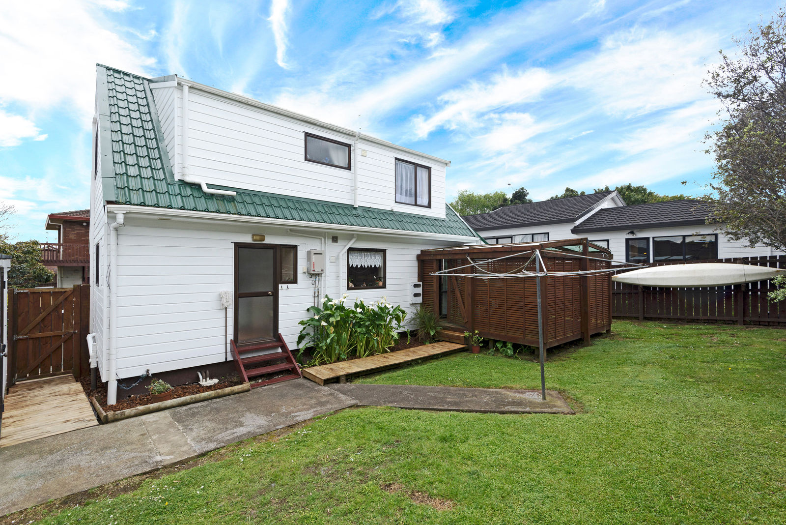 This immaculately presented, north facing, 4 bedroom family home has an open plan kitchen, dining, lounge which flows onto a private out-door BBQ area. There is a double bedroom, bathroom and W C downstairs (with separate access) and upstairs, a double bedroom, two singles and another fully renovated bathroom.