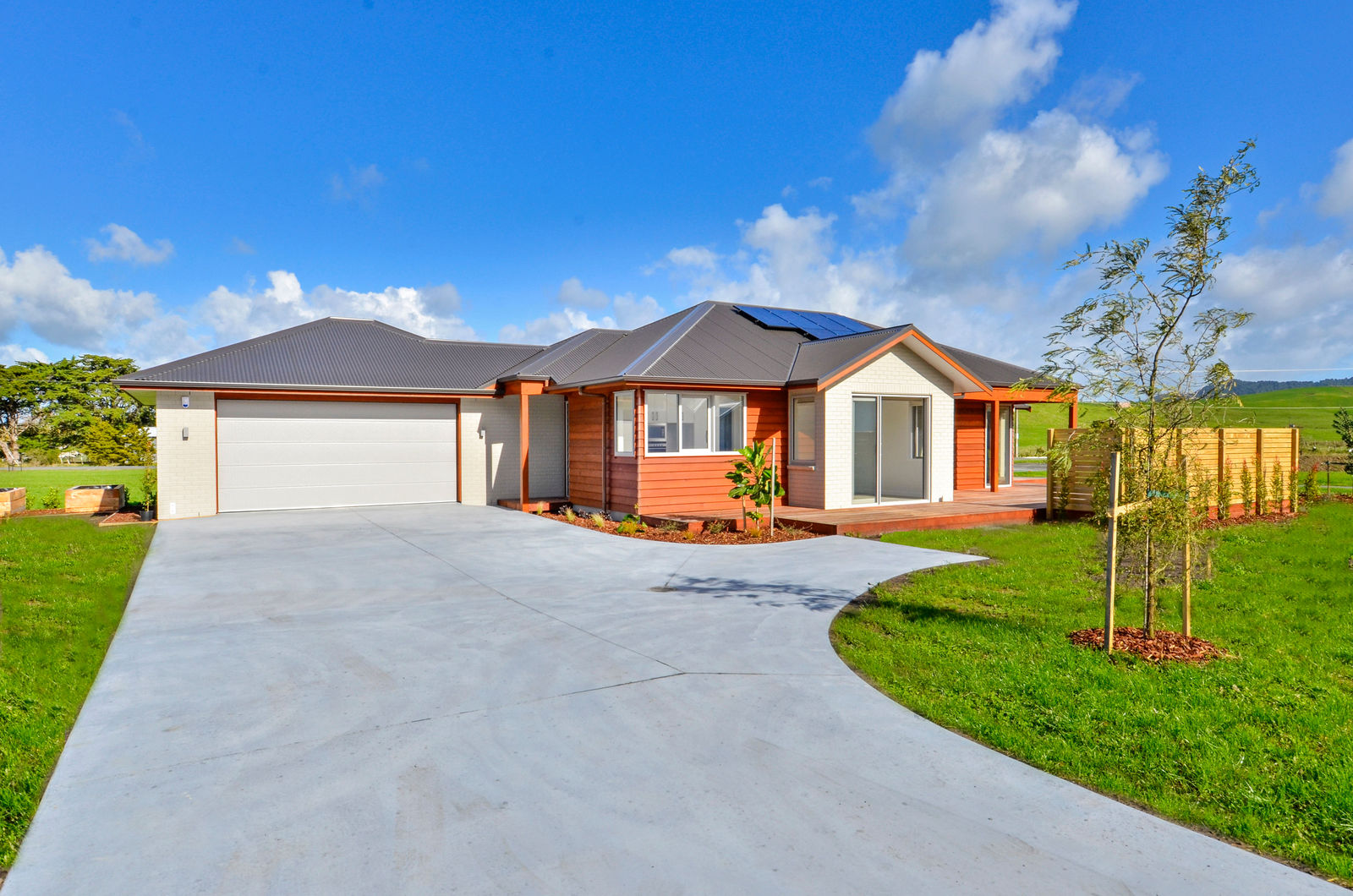 3 beds, 2 bathrooms with double shower in the ensuite, office, separate lounge, open plan kitchen dining, generous fully insulated carpeted garage with indoor/outdoor clothesline