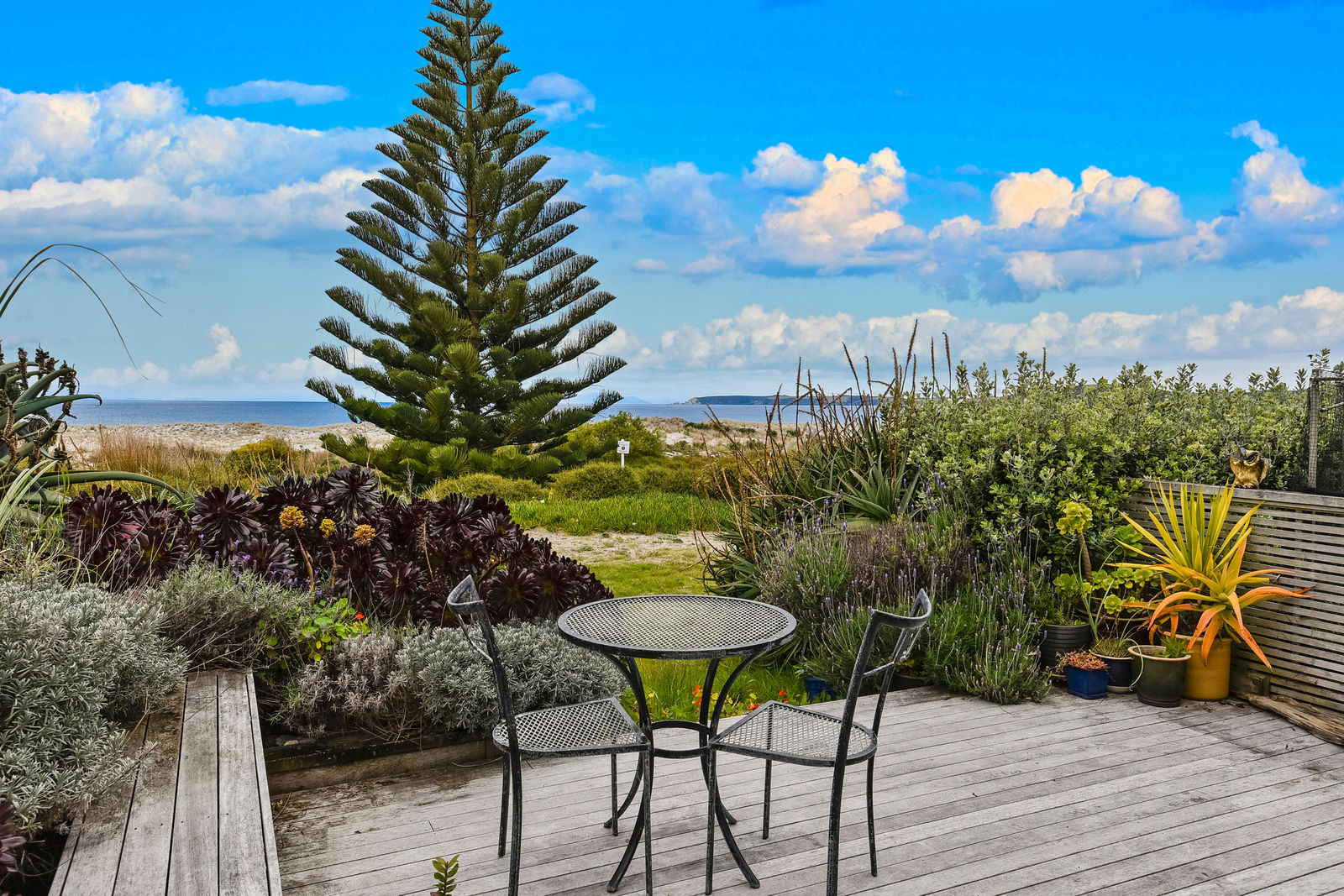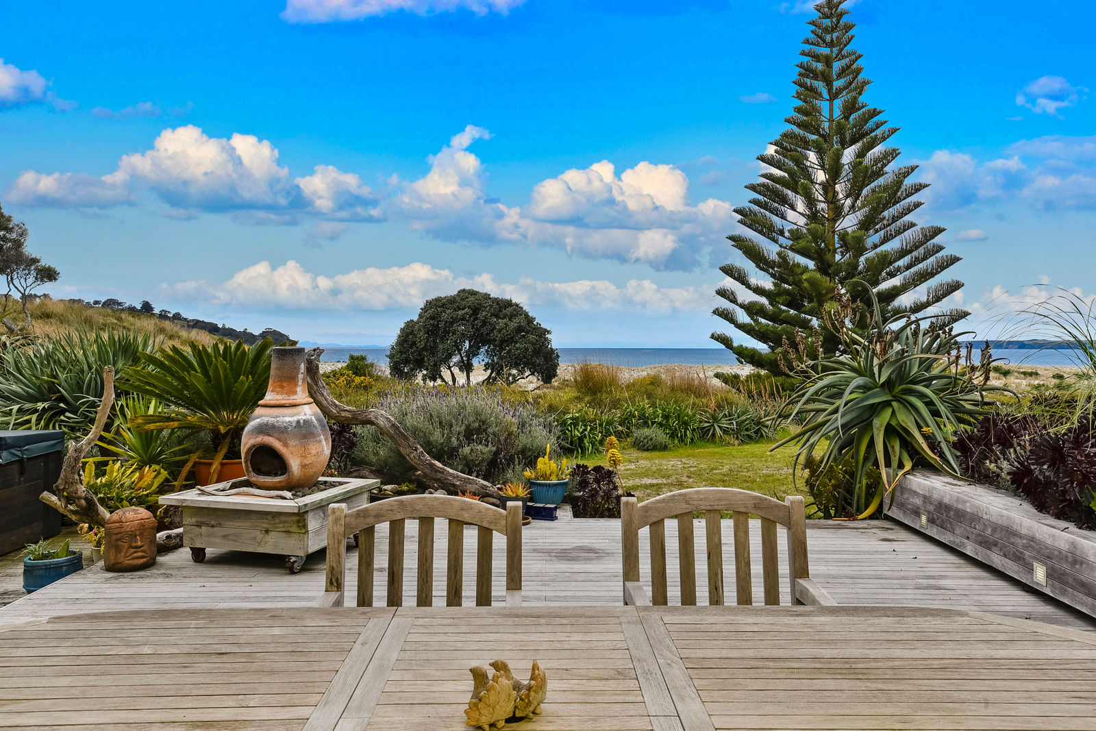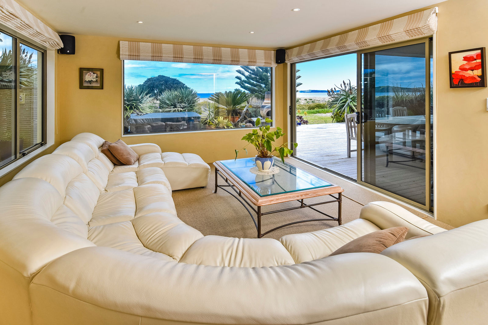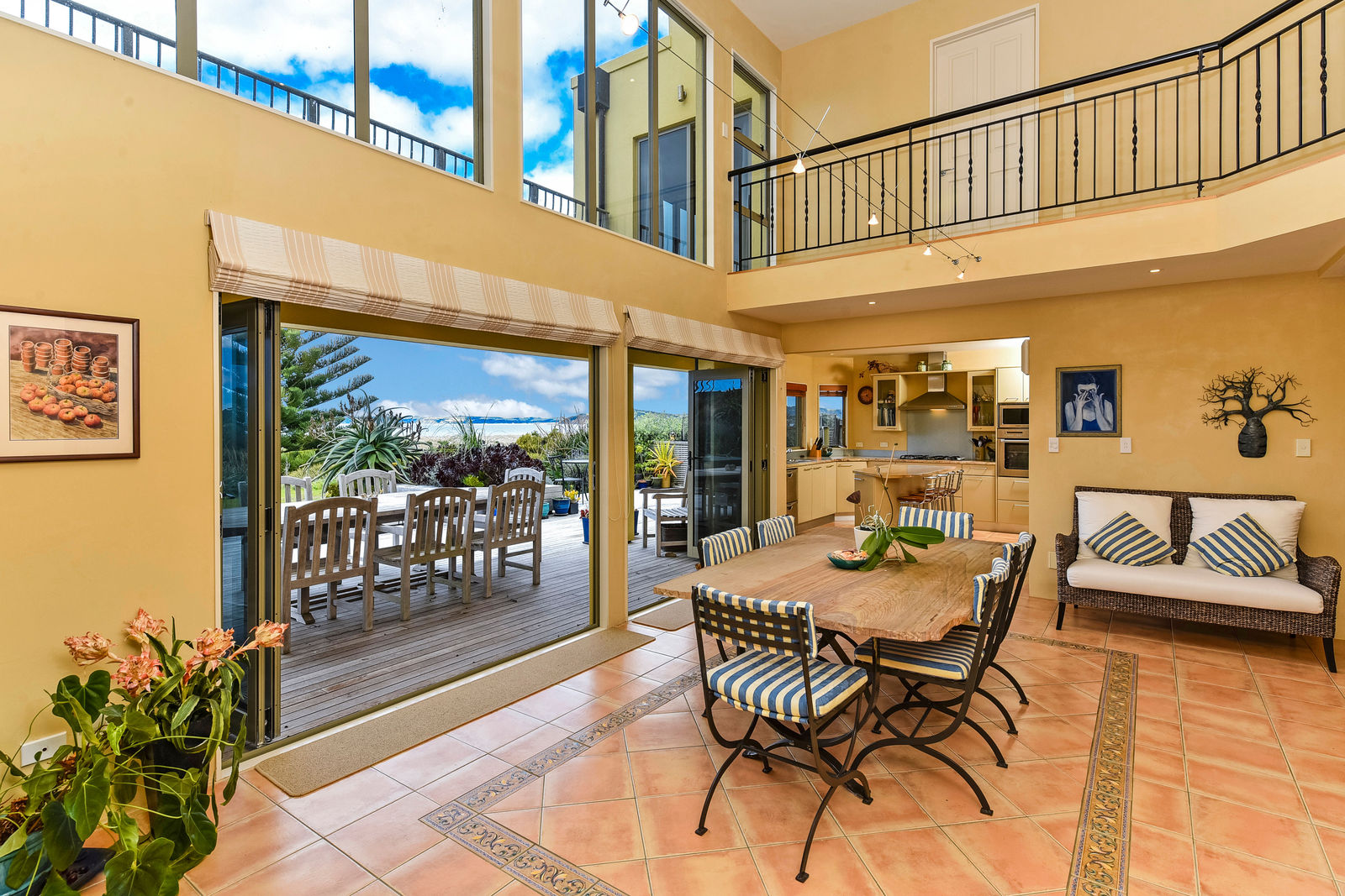 The exterior textured surfaces, detailed internal floor tiling are the hallmarks of Mediterranean décor. With the magnificent Omaha Beach as your back drop, back door, and the multiple indoor-outdoor living spaces this house is about enjoying life outside, and even on dark gloomy days the spicy touches warm up the cockles of your heart.