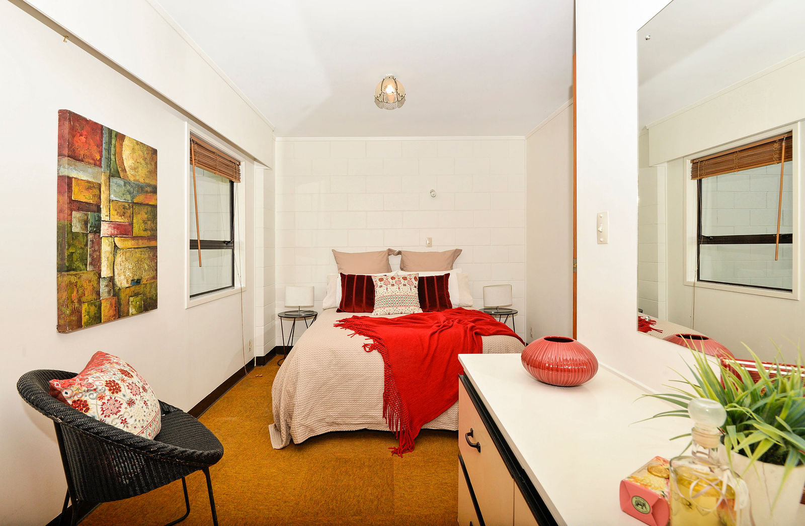 This classic, solidly constructed unit has 2 double-bedrooms upstairs which overlook well established trees set-in park like grounds and downstairs there is a lounge/dining area that opens onto a fully-fenced patio. The separate kitchen, which is in need of a revamp, can be opened up to create a very open spacious living area. There is also a separate laundry.