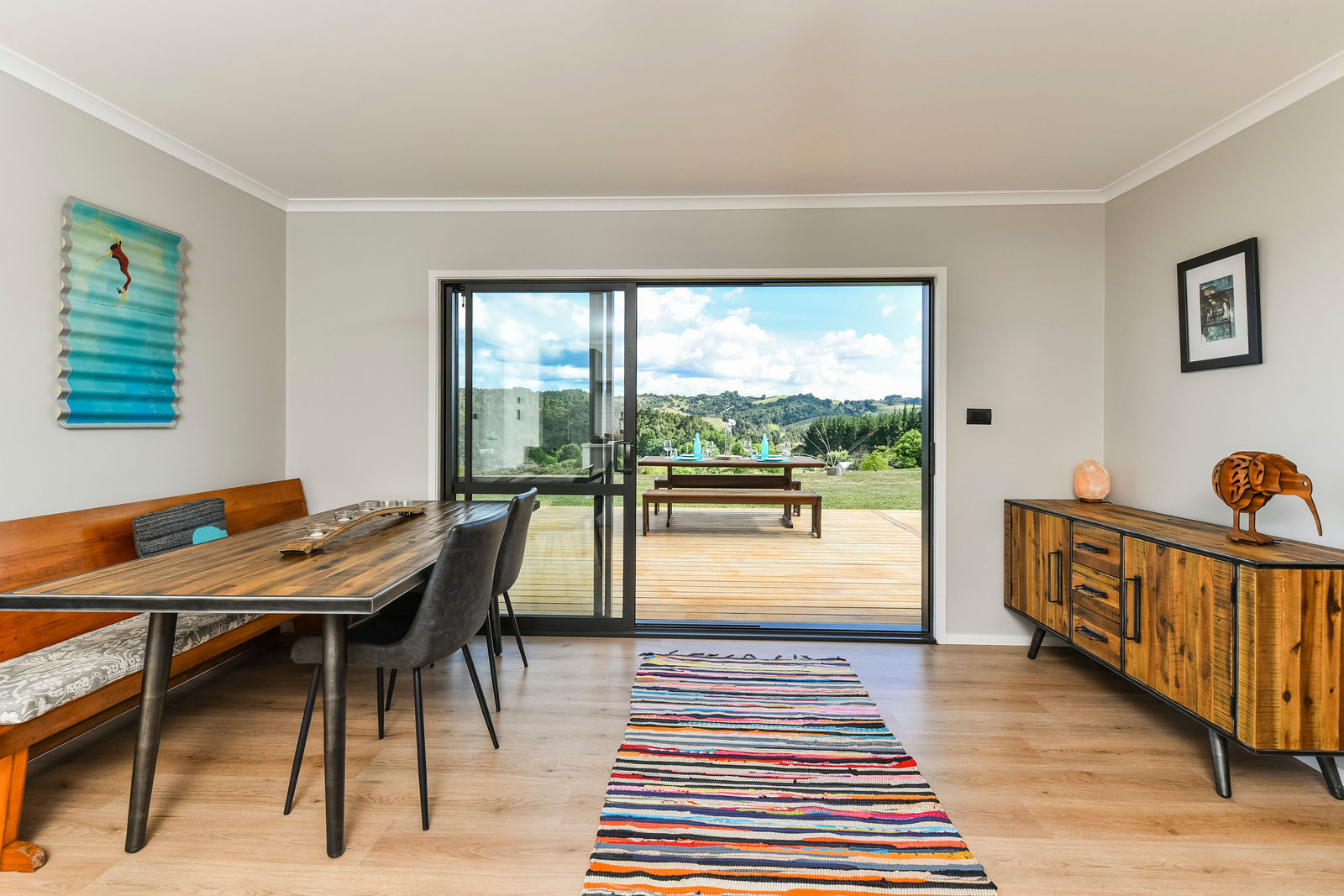 The sounds of nature so close to town! Tranquil Lifestyle property approximately 6-7 minutes' drive from the SH1 Millwater off-ramp, 300m up a tree-lined driveway. Elevated North-facing aspect with panoramic views and a 100m2 deck overlooking native Rimu, Kauri and Ti Tree covenanted bush with a stream. Open plan living with a kitchen that is an entertainers delight: 900mm freestanding electric oven with gas hob, stone benchtops, kitchen island, quality appliances, and great indoor/outdoor flow to decks, firepit, and a level lawn perfect for the kids play area, a cricket pitch or future pool. Other features include: fully double glazed and insulated, HRV, smart wiring, Metro wood burner fire for cosy winter nights, RBI wireless broadband and Vodafone sure signal to keep you connected when working from home. Stunning outdoor lighting, extensive low -maintenance planting - including four raised veg and herb beds - and two fenced paddocks complete this Lifestyle dream in the perfect location. Call us for a private viewing or come along to one of our open homes.