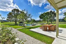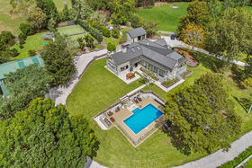 Multi-zoned communal areas invite formal entertaining and casual relaxation with similar finesse while the gourmet kitchen supports every occasion on the social calendar with premium appliances, central island & scullery. Outdoors is a wonderland for kids & adults alike with in-ground salt water heated pool, full sized all-weather tennis court & huge barn all surrounded by level lawns & landscaped gardens.