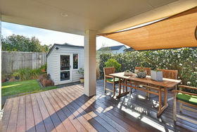 The large, designer kitchen links in well with the dining room, family room and lounge, all of which can be closed off for easy heating and cooling. These areas flow out to the raised, wooden, deck complete with shade sail and gas and power outlets for easy outdoor living. There is also a guest double bedroom right next to a separate bathroom, and double internal access garaging with a laundry area to the side.
