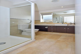 The four double bedrooms upstairs are finished in a modern theme, in keeping with the contemporary charm of the house. The master bedroom has a walk-in robe and ensuite, and there is a family bathroom servicing the other bedrooms. There is also another living area at the top of the stairs.