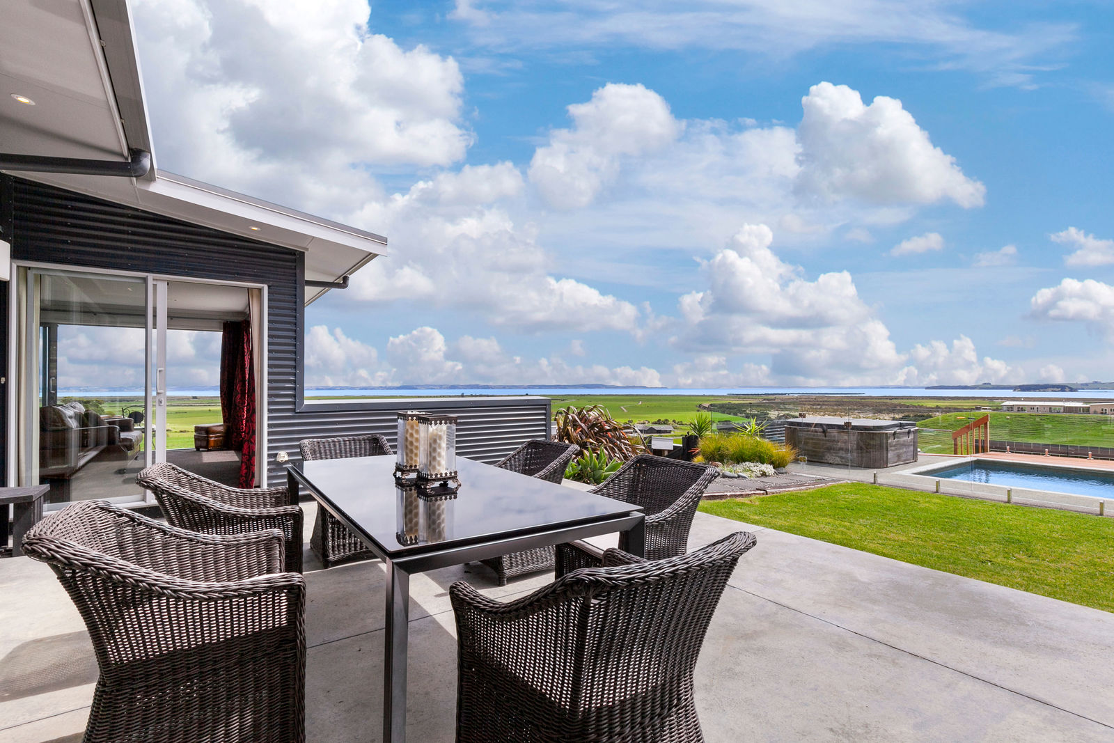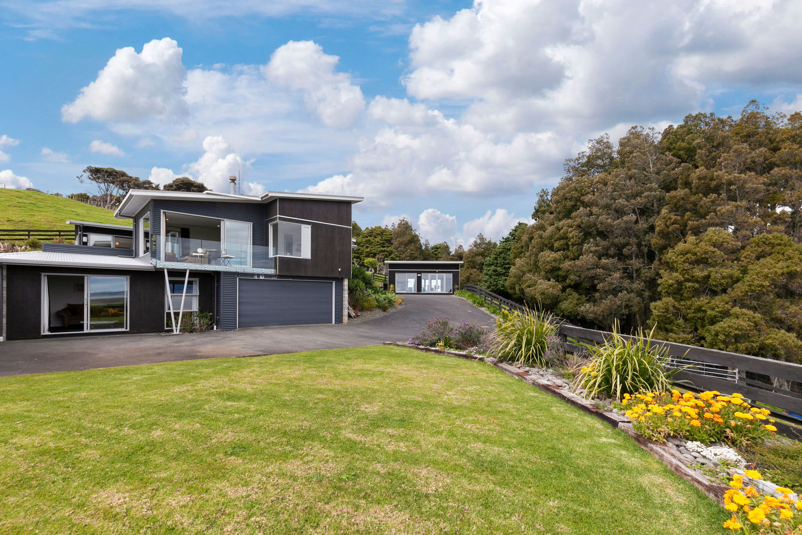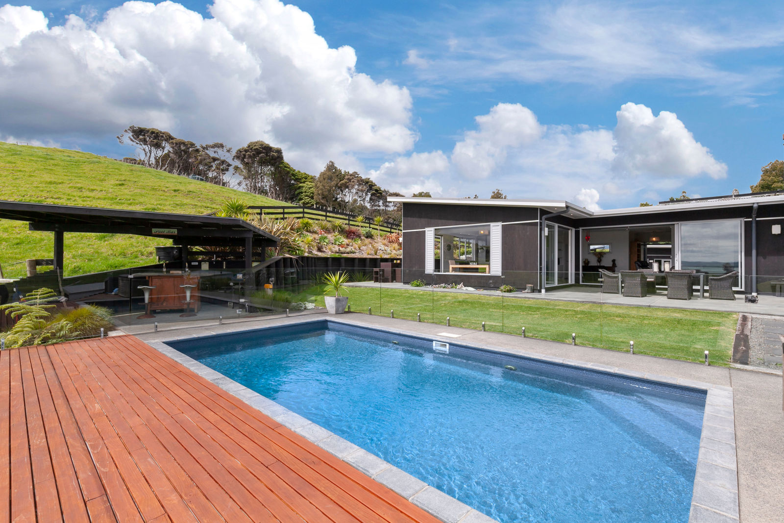 This magnificent property has absolutely everything you could wish for: An elegantly designed and finished home with stunning views and glorious sunsets; landscaped garden and entertaining areas; a great pool, a spa for relaxing in the evenings, and a state-of-the-art electronically controlled hot water system - solar, wetback & electric - with a huge hot water storage tank. There is also a separate matching building set up as a gym, air-conditioned, fully insulated, double glazed, and with its own stunning views to enjoy as you work out. Plenty of storage space comes with this property, including a big shed for all the toys. 7.7Ha (19 acres) mainly grazing land, half flat, the rest sloping and with a small pocket of bush at the NE corner. A neighbour currently grazes the land with sheep but you can have your own stock if you prefer. It's around 15 minutes' drive from Kaukapakapa and about the same from Wellsford. If you are considering a Lifestyle property with 'Executive' status, and with a very affordable price tag, then come and view this one and be pleasantly impressed. We promise you will fall in love with this property.