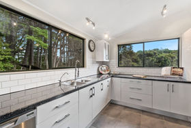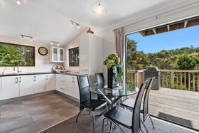 As you drive through the electric gates you will find this fabulous board and batten home tucked in the most gorgeous setting of beautiful native bush filled with birdlife. The 1.09 hectares (approximately 2.6 acres) of land is very pretty with enough room for sheep and chickens and a wonderful huge flat lawn, complete with a swing set, ideal for the children to play and kick a ball around. The North facing 3 double bedroom home has a lovely welcoming feel, a gorgeous new kitchen, open plan lounge and dining, carpeted garaging and separate laundry. The North facing indoor outdoor flow is fantastic with the choice of two decks in which you can enjoy your cup of tea and take in the birdlife. You will love having your own organic veggies or herbs from the raised beds outside the kitchen and fruit from the established fruit trees. There is also a separate Estonian Chalet which could be used for many things but has made a wonderful home office for the current owners. There is plenty of parking for a campervan and a boat.