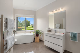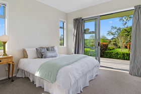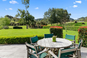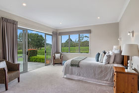 There is a fantastic separate barn with a toilet and washbasin that provides even more space and storage for any classic cars, boat, horse gear or motorbikes over and above the generous four car garaging with internal access at the house. Gorgeous level pasture that is well fenced surrounds the home adding to the privacy and enabling you to watch over your animals with a breath-taking backdrop of native bush. The forest is at the end of this quiet no exit street so perfect for horse riders.