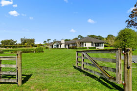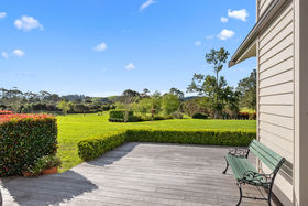 This beautiful weatherboard home is perfectly positioned on the 2 hectares of land to overlook the paddocks and take is an abundance of sunshine. The home has separate living areas including one with a cosy fireplace, three bedrooms including the master suite, a spacious kitchen with a beautiful island bench, stylish bathrooms and double garaging. There is also an additional granny flat at one end of the home with a further kitchen, lounge, bathroom, bedroom and double garage. The sun filled home oozes warmth with a delightful modern interior and lovely high ceilings. There is a brilliant deck for entertaining or relaxing with a glass of wine at the end of the day. Beautiful mature plantings and box hedging around the house complete the picture. Whether or not you are a family wanting to combine the Granny flat with the main home to give you four bedrooms, three bathrooms and three living rooms or utilise the clever design for extended family the options are all here.