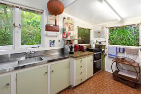 The two bedroom 1940s bungalow has been well loved and is now ready for a new family to enjoy its enchanting private bush clad surroundings and stunning outlook. Featuring a sunny living room that flows directly outdoors onto the deck and showcasing mesmerizing ocean views.