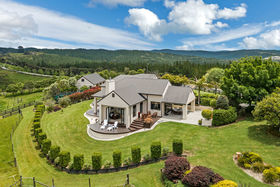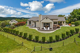This is the perfect property if you're looking for large shed space, gorgeous home and views to die for. This "Town and Country" masonry villa has been built to a high standard and it is easy to see that plenty of thought went into the design and build of this exceptional home. The pretty tree lined driveway leads you to a grand entrance with large double doors. Inside you will find several living areas, formal and informal dining, 3 good-sized bedrooms including the master plus an office, a wine cellar, separate laundry and two full bathrooms plus a guest toilet. From the kitchen the large bi-folding doors open to an incredible undercover entertaining area with drop down sides so that entertaining any time of the year is a breeze. The detail around the decking with planter boxes, wonderfully landscaped grounds and large mature trees makes this property very special. The paddocks are well set up with water and shade and there's a fantastic shed with a concrete floor ideal for shearing, tie up area for the horses etc. The house has a double garage with internal access then there is a separate triple car garage and workshop plus a further carport. There is plenty of storage both inside and outside. There is also a small orchard and brilliant vegetable garden. Enjoy a glass of wine at the end of the day and take in the most spectacular view!!!