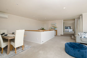 Stairs from the spacious tiled entry lead to the upper level which offers a "master bedroom retreat with deck", ensuite bathroom, walk-in wardrobe and a further separate w.c. and hand basin. The stunning open plan lounge/dining features floor to ceiling glass with access to a tiled deck ideal for outdoor living and summer barbeques. A modern up to the minute separate kitchen also enjoys the gorgeous views to the harbour and offers generous bench and cupboard space.