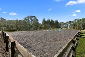 Further features include an enormous steel framed barn which enjoys a separate entrance away from the main home, stables, an arena, separate pool house with bathroom, separate self-contained studio, additional storage room, large veggie patch, orchard and much more.