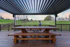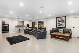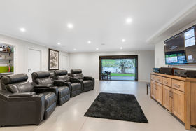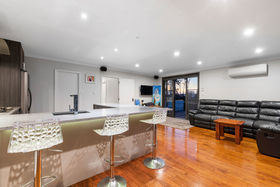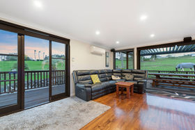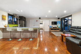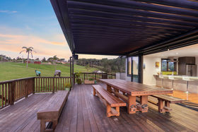 The home - Downstairs there is a massive entertainment/media room with surround sound speakers, a bar, covered deck plus a master with ensuite and a further 1-2 bedrooms. Upstairs you have a further 3 bedrooms, another stylish bathroom with a large bath, an open plan kitchen/living opening out to the most incredible covered outdoor entertaining area with a louvred opening roof. Beautiful hardwood decking wraps around the home.