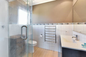 Downstairs you will find a large formal dining and living that both open onto the deck, an open plan, modern kitchen that flows effortlessly to the dining and family room all of which overlook the in-ground pool. There is a study or a 5th bedroom, family bathroom, toilet, oversized laundry and also the internal access garage with high stud ceiling and also water views, oh did I mention the storage??