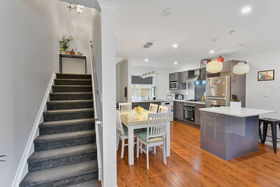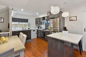 Ground floor layout has a Modern look with open plan kitchen dining and living area.