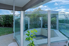 The double glazing and underfloor heating from geothermal hot water bore as well as the heat transfer system throughout makes this home energy efficient and most delightful for all seasons. The hot water bore also is used to relax and soak in the fresh water spa sized pool, no chlorine required, what a treat!