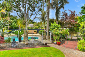 For those who love to either escape or entertain there is a rear decking area with entrances off both the kitchen and master bedroom that flows effortlessly onto a beautifully landscaped north facing section with a pool, seating area, and enough spare space for the kids to run around.