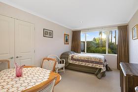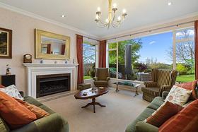 The spacious lounge, featuring a gas fireplace, flows seamlessly into the formal dining area, creating the perfect setting for family gatherings and celebrations. The open-plan layout extends via the outdoor patio dining space onto sweeping north-facing views.