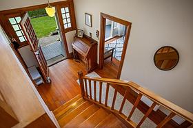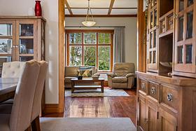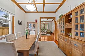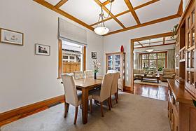 Defined by its iconic gambrel roofline and dormer windows, the home sits gracefully behind a landscaped front garden. Step inside and you're greeted by original timber floors that speak of the home's era, light streaming through leadlight panes, and rooms that unfold with a sense of rhythm and permanence.