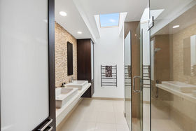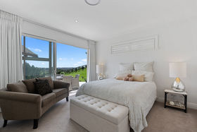 The home's layout is meticulously crafted to embrace natural light throughout the day, showcasing oversized windows that create a seamless transition between indoor and outdoor living. The luxurious master suite serves as a private retreat, complete with a spa-like ensuite bathroom and an expansive walk-in dressing room that offers ample storage and elegance. For added convenience, a separate guest wing is thoughtfully included, providing visitors with their own comfortable and private space.