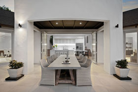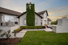 The designer kitchen is a culinary enthusiast's paradise, featuring an enormous island bench that serves as both a functional workspace and a social hub. It is equipped with a spacious scullery, top-of-the-line appliances, and exquisite finishes that elevate the cooking experience. This culinary haven effortlessly connects the formal dining area and informal lounges, leading out to a spectacular outdoor entertaining space adorned with a large fireplace, perfect for memorable summer evenings spent with family and friends.