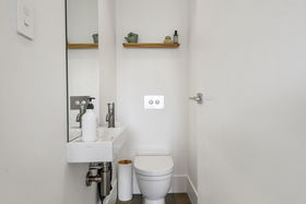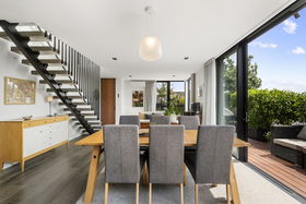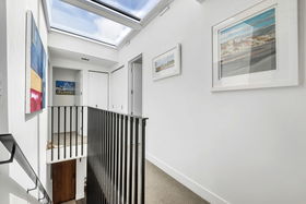 With its high-end construction, sleek design, elegant finishes, 4 bedrooms, 2.5 bathrooms, Cedar clad on a freehold title, this is your ideal luxury residence. The ground floor features French Oak flooring, an Italian inspired kitchen, with Caesar stone bench top and fully integrated Miele appliances. There is also a guest toilet, lockup carpeted garage with internal entry, aircon/heat pump and security system. The floor to ceiling stacker doors open up to a private sun filled wrap around deck and alfresco entertainment area which enjoys privacy and sun. Access to the upper level is by custom designed floating stairs with French Oak treads. The primary bedroom has aircon/heat pump, walk in wardrobe and luxurious tiled ensuite with frameless glass shower, custom built vanity's, marble tiled heated floors. The other three bedrooms, one of which could be used as a second lounge/tv room are well proportioned. The main bathroom is impressive with a stand-alone bath and heated Artedomus marble floor tiles, frameless glass shower and custom built vanity.