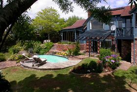 Inground swimming pool with water feature, spa and large patio gardens on a generous 1391 sqm private, established section, caters for entertaining and large family functions.
