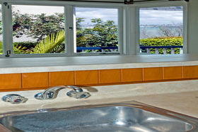 open plan kitchen, dining and family area all with glorious sea views. The four