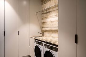 Additional practical spaces include a separate laundry, an internal-access double garage, gym, extensive storage and plant equipment for the home's heating and air-exchange systems.