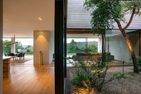A serene courtyard centred around a mature cork tree anchors the home's calm, elegant aesthetic. Light-filled living spaces unfold in an impressive open-plan layout, where a travertine island, Boffi cabinetry and premium European appliances define the designer kitchen. Automated pocket doors open to sun-drenched terraces, manicured lawns, a 15-metre heated pool with integrated spa, and beautifully landscaped grounds. Supplementing the main living areas are a media room, library, sitting area and superb zones for everyday living and entertaining.