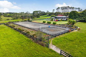 Set well back from the road along a picturesque private driveway, this remarkable property unveils 9.58ha of flat-to-gently-rolling land -a breathtaking canvas for equestrian dreams or the pure joy of country living. Enveloped by twelve thoughtfully designed paddocks with premium seven-wire and post-and-rail fencing, and serviced by thirteen troughs, a limed raceway, two stables, a dedicated tack room, and a professional 60x20m arena, this sanctuary is ready to inspire riders of any level to reach new heights. The cedar weatherboard family home is a harmonious blend of timeless elegance and everyday practicality. The master suite is a secluded retreat in its own private wing, while two of the four spacious bedrooms feature luxurious en-suites and walk-in robes. Expansive open-plan living spaces flow seamlessly to a covered alfresco area with inspiring views over the arena -perfect for effortless entertaining and cherished family moments. The designer kitchen is a chef's haven, complete with a butler's pantry and premium gas cooking. Modern comforts abound, including underfloor heating in tiled areas, instant gas hot water, four large water tanks, and a state-of-the-art septic system. The outdoor amenities are equally exceptional. Dive into the sparkling heated, saltwater pool, relax on expansive manicured lawns, or make the most of the versatile outbuildings. The two-bay sports lounge shed creates the ultimate space for hobbies, celebrations, or relaxation, while the four-bay shed provides ample room for boats, horse trucks, floats, or a workshop -catering to every passion and pursuit. Perfectly positioned near Kumeū, this address delivers the rare blend of privacy, tranquillity, and convenience -with multiple commuting options offering swift access to Auckland and beyond. Impeccably maintained grounds, exceptional family living, and thoughtfully designed amenities unite to create a turn-key lifestyle opportunity of the highest calibre. Here, every detail promises comfort, inspiration, and the freedom to embrace life at its fullest.